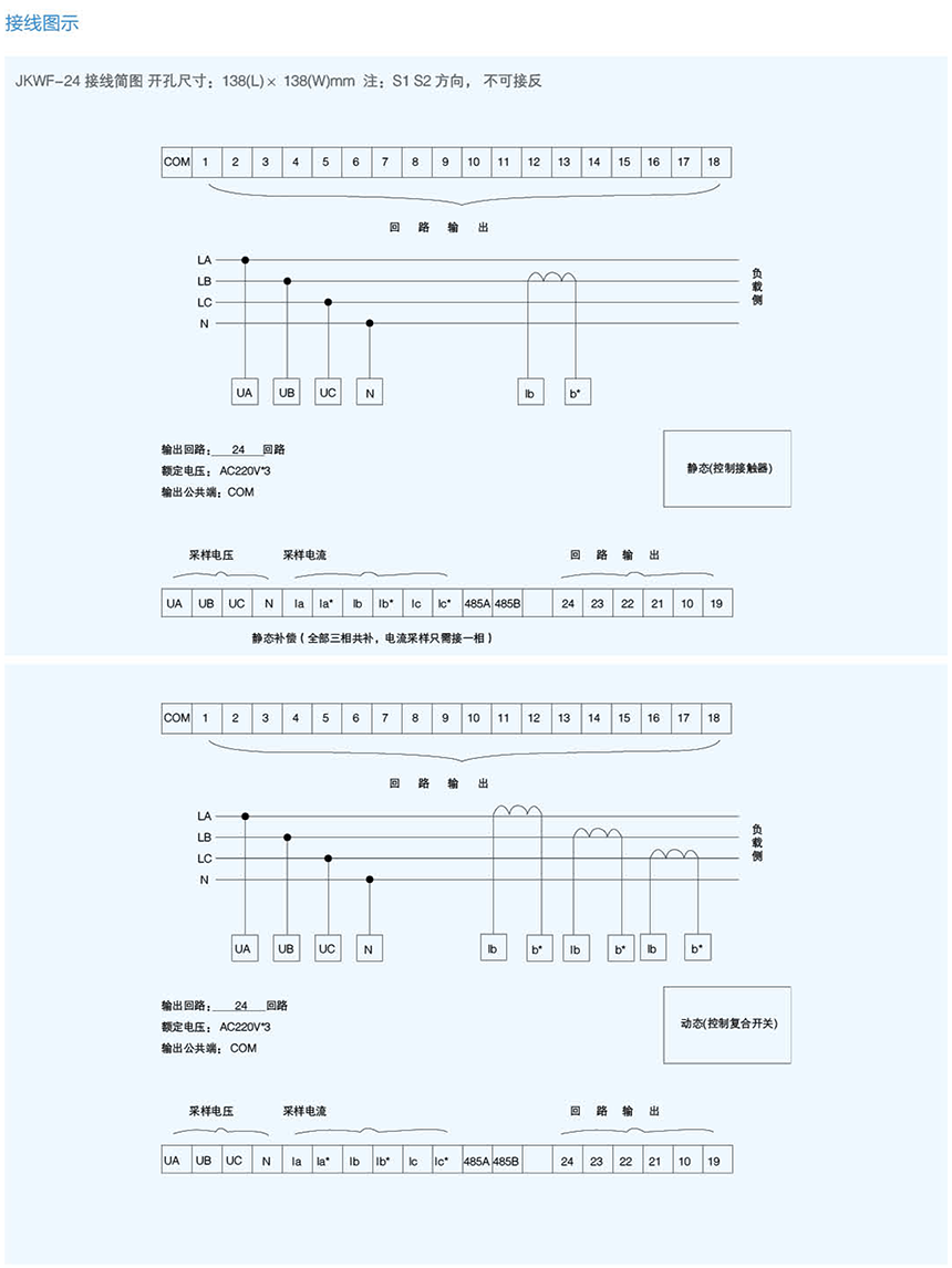 JKWF系列無功功率自動補償控制器,適用于低壓配電系統電容器補償裝置的自動調節,使功率因數達到用戶預定狀態,提高電力變壓器的利用功率,減少線損,改善供電的電壓質量。